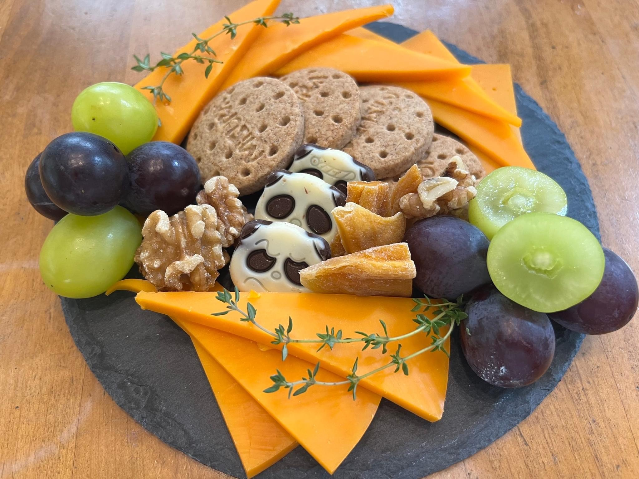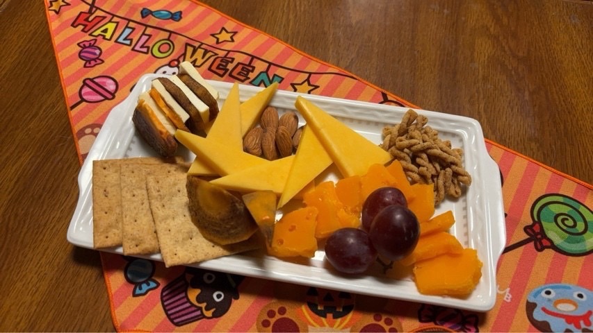 チェダーとミモレットの盛り方に工夫を感じます。そして、副食材も、チーズや今回のテーマにぴったりです。ハロウィンが楽しみになりますね。