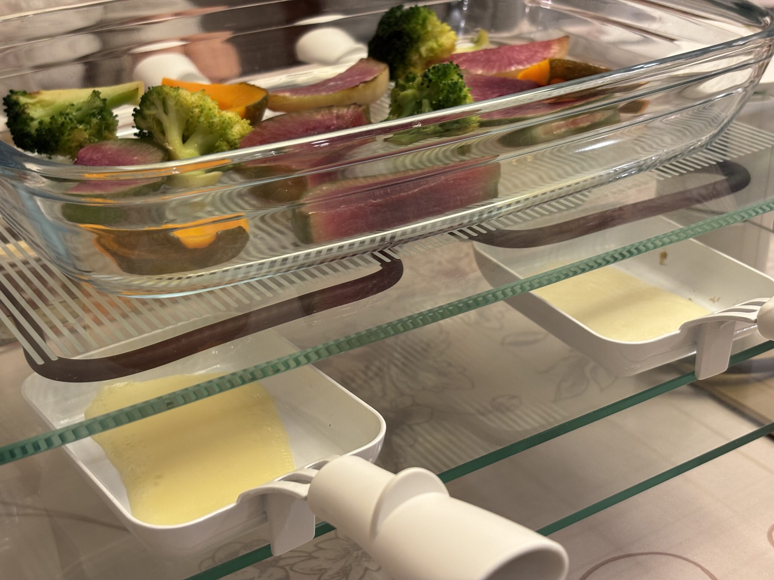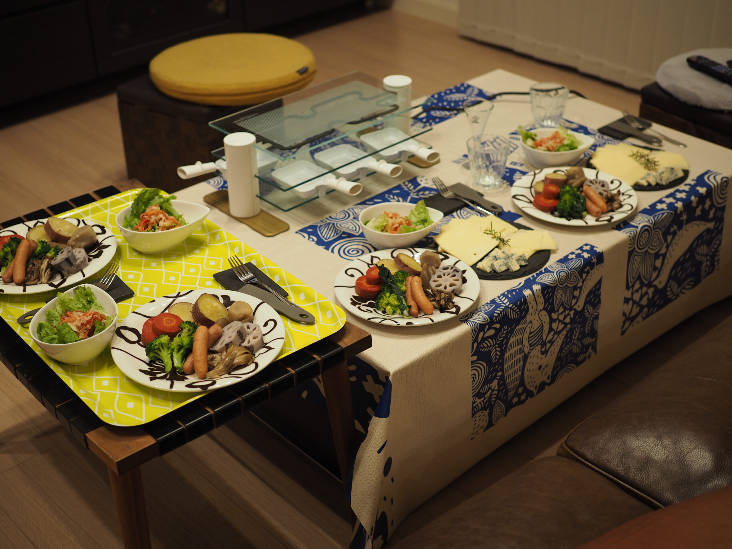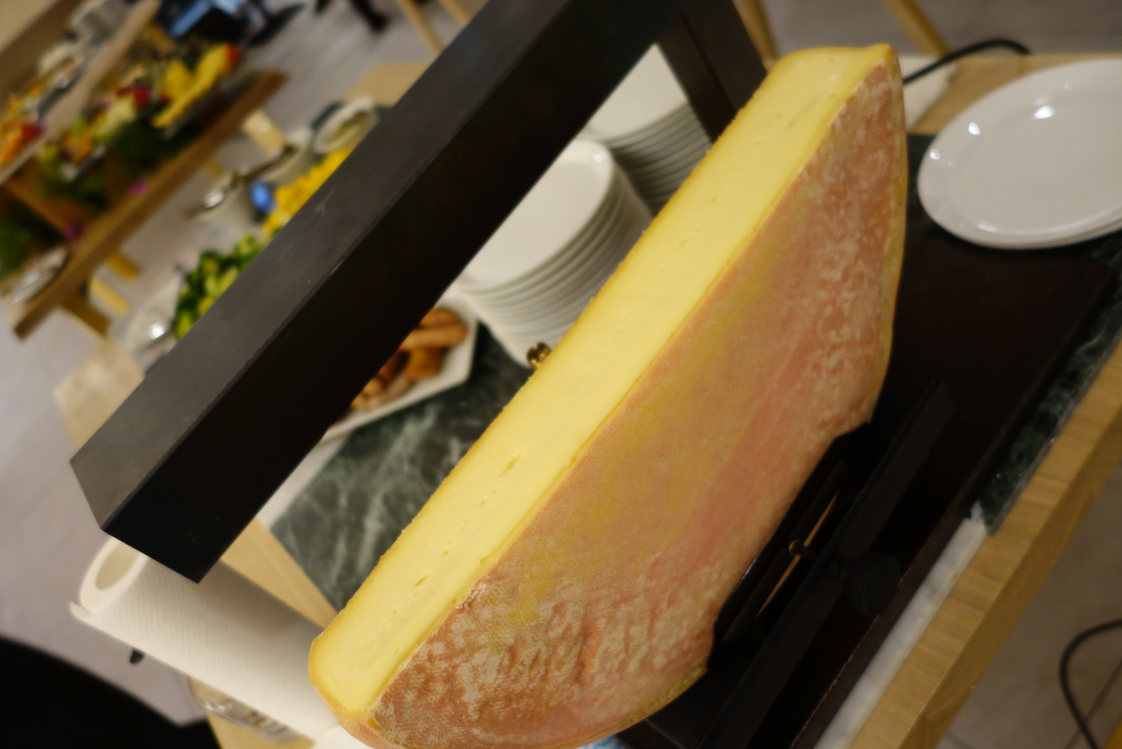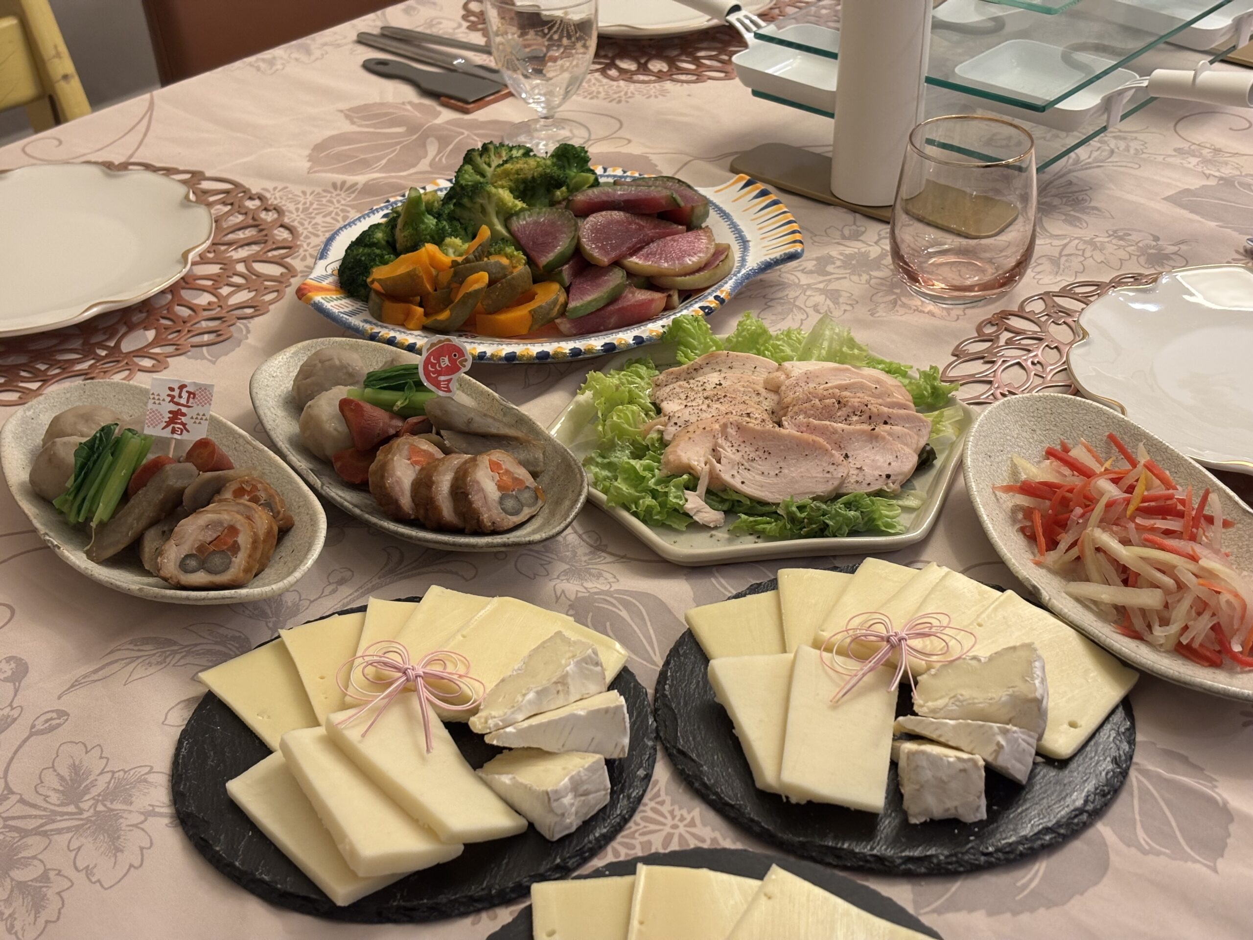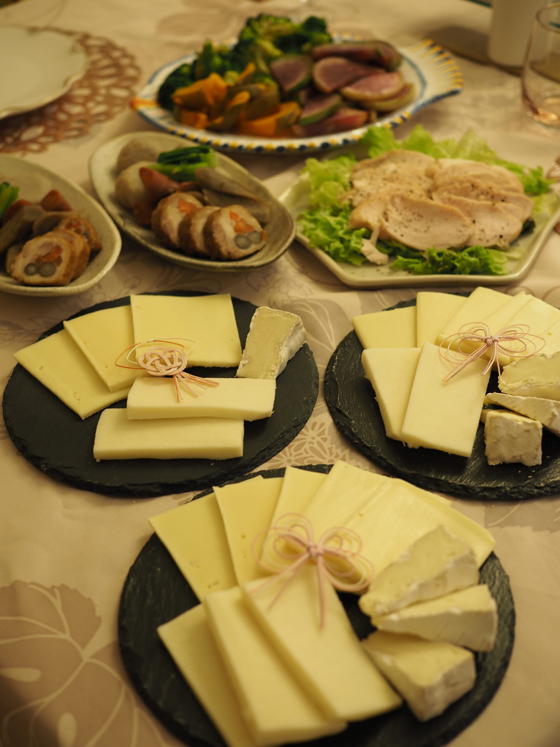チーズ、パン、生ハム、ピクルスを我が家に持ってきて