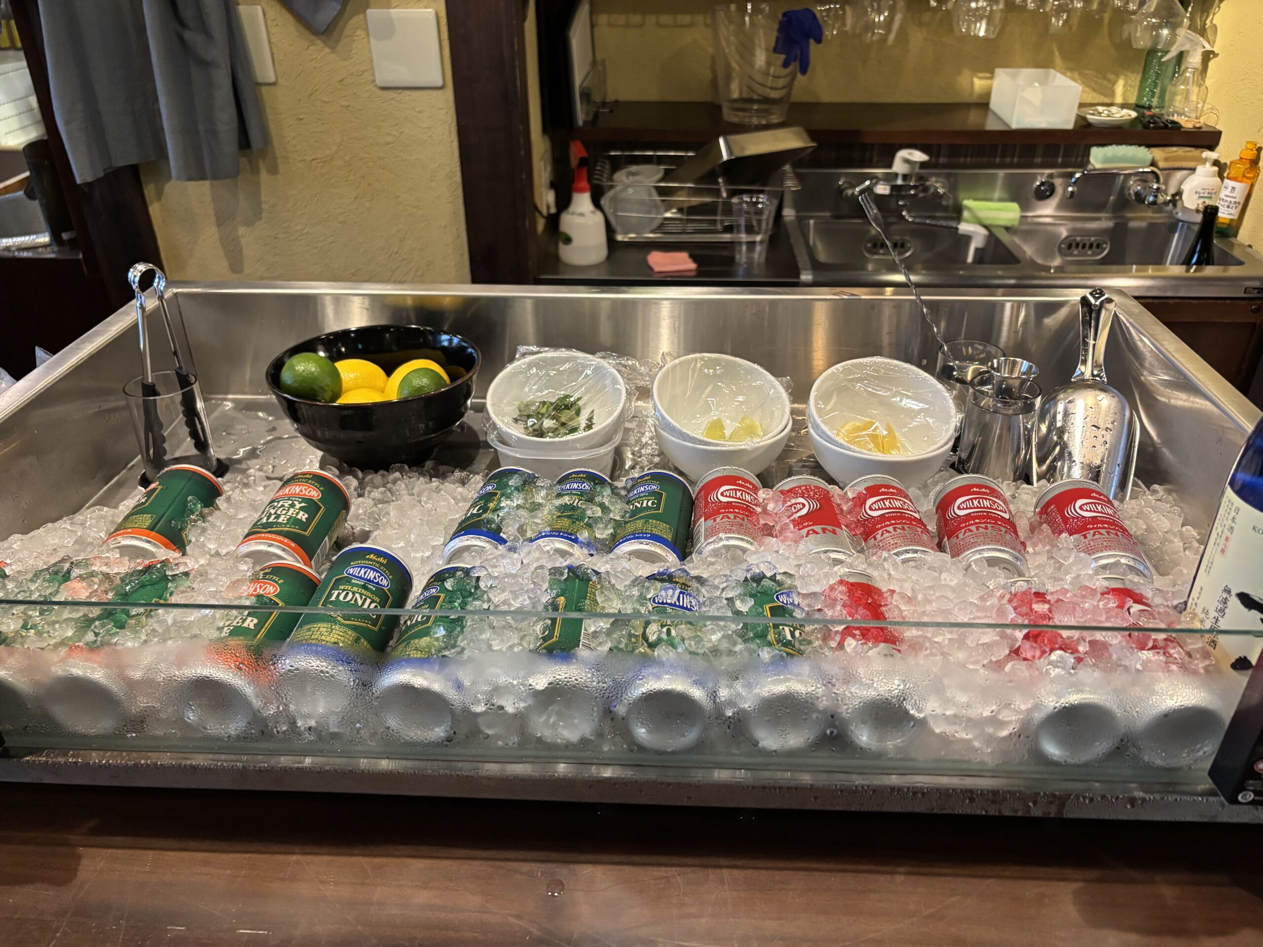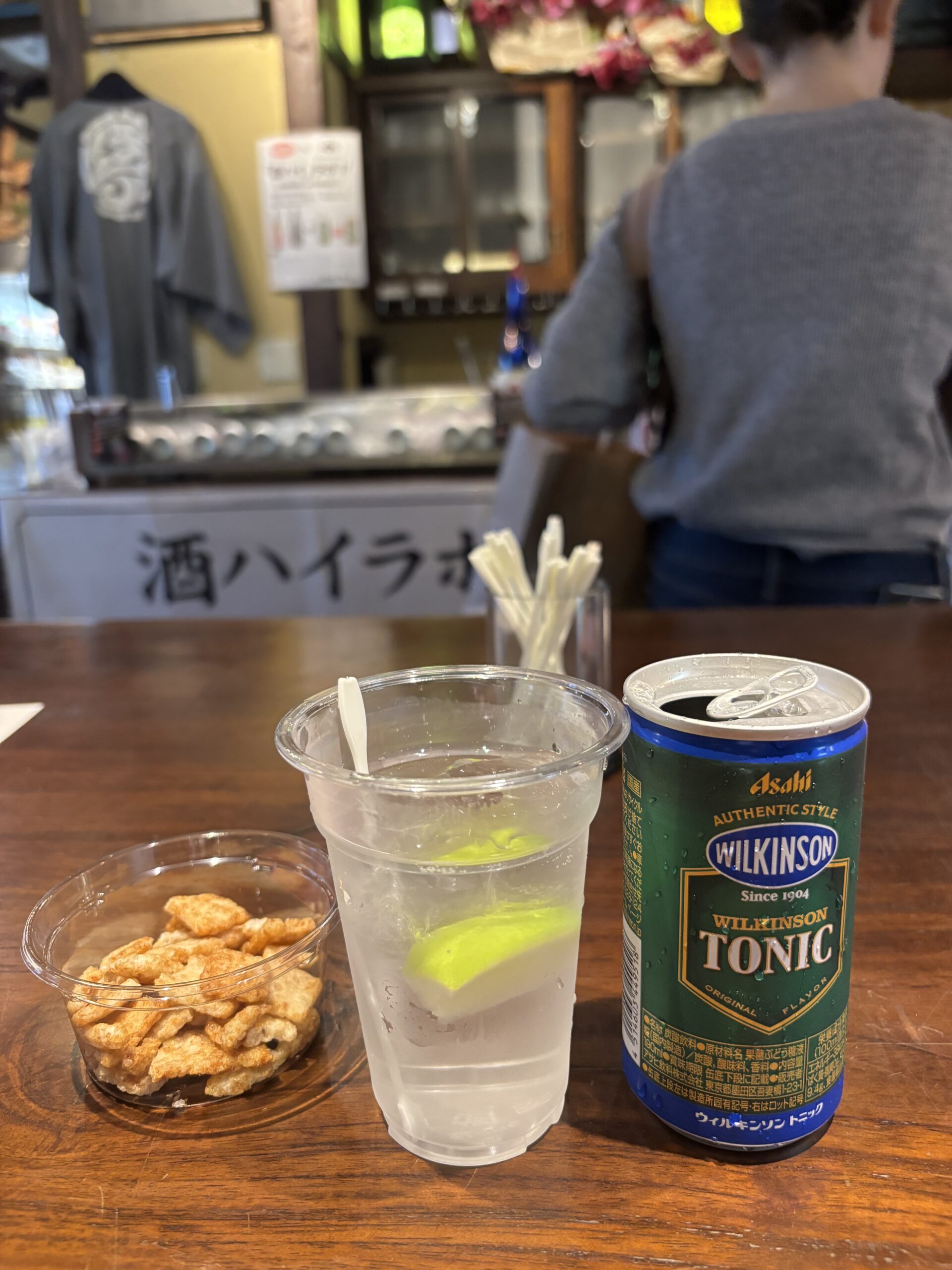 トニックは缶のままもらって、好きな量をいれて飲みます。トニックとライムのおかげで、日本酒が軽やかに楽しめ、疲れた体を優しく癒してくれました。自宅でも簡単にできるカクテルはいいですね。