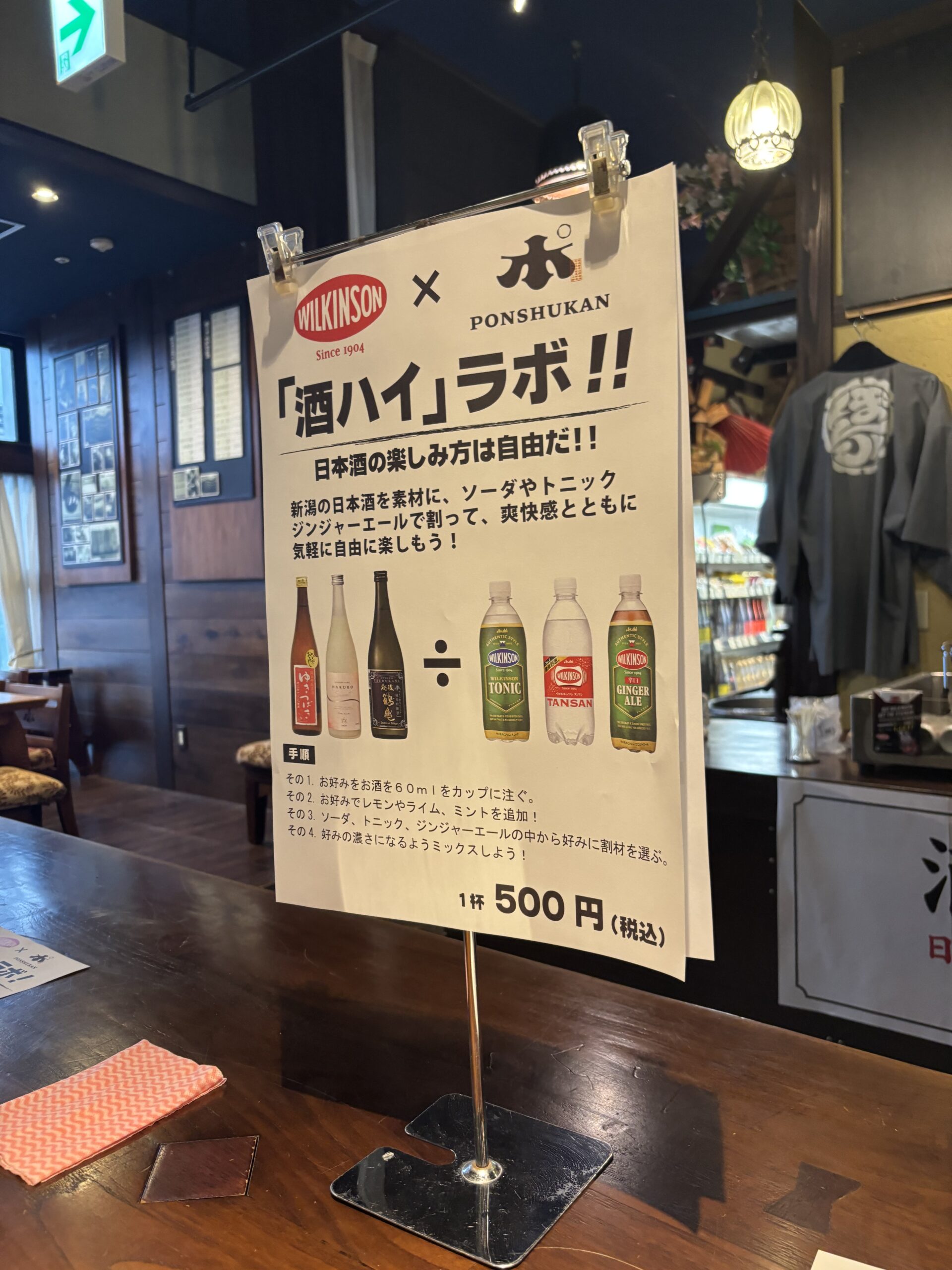 新潟のお酒と炭酸飲料と、レモンなどを選んで作ってもらえるカクテルがありました。ちょうど喉も乾いているし、日本酒も楽しみたい、その両方を満たしてくれそうなカクテルでした。