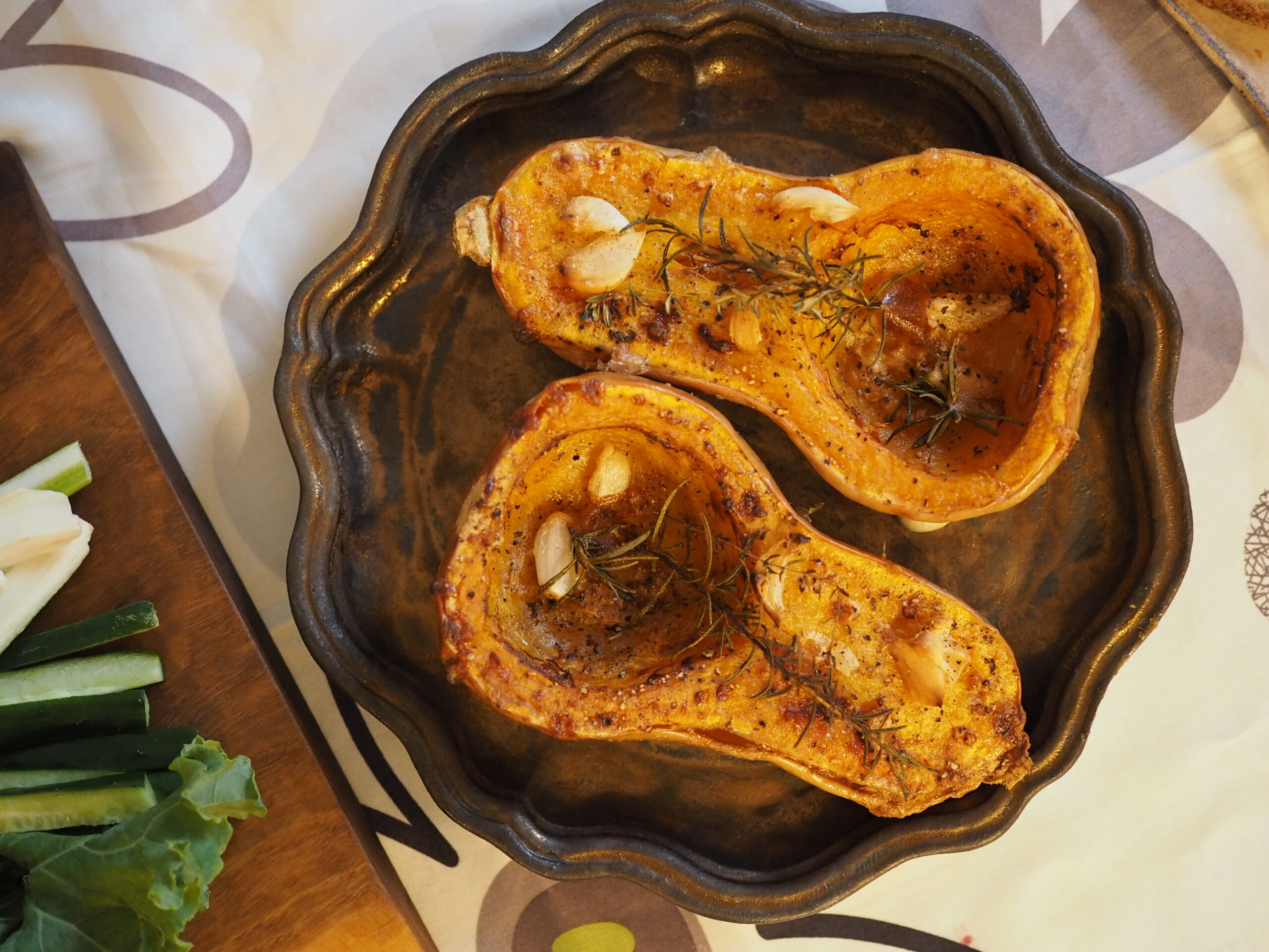 バターナッツかぼちゃ。これはオーブンで焼いているけれど、スープにも〇