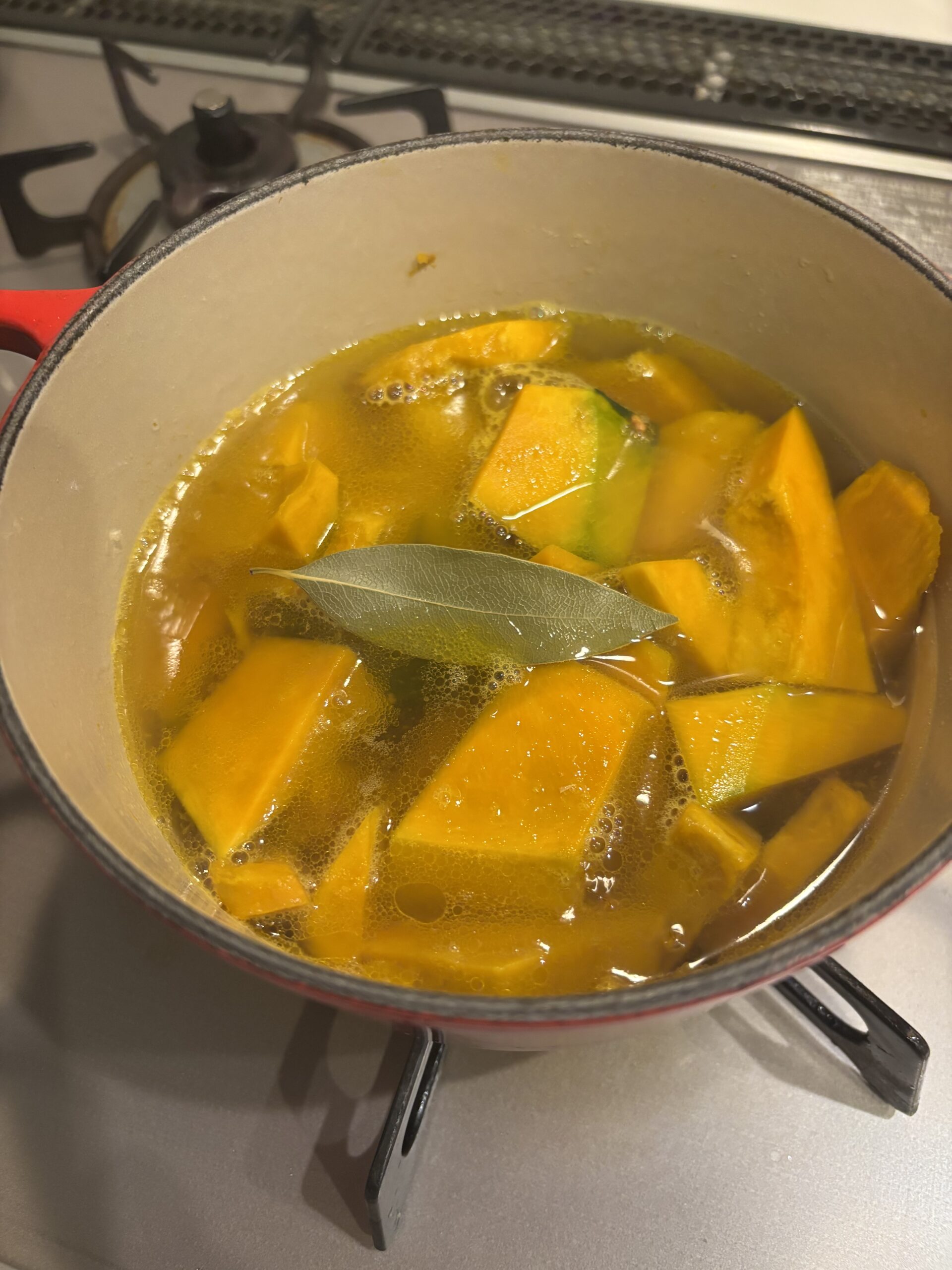 シンプルなかぼちゃスープ。寒い朝にあったまって、栄養たっぷりで嬉しい。