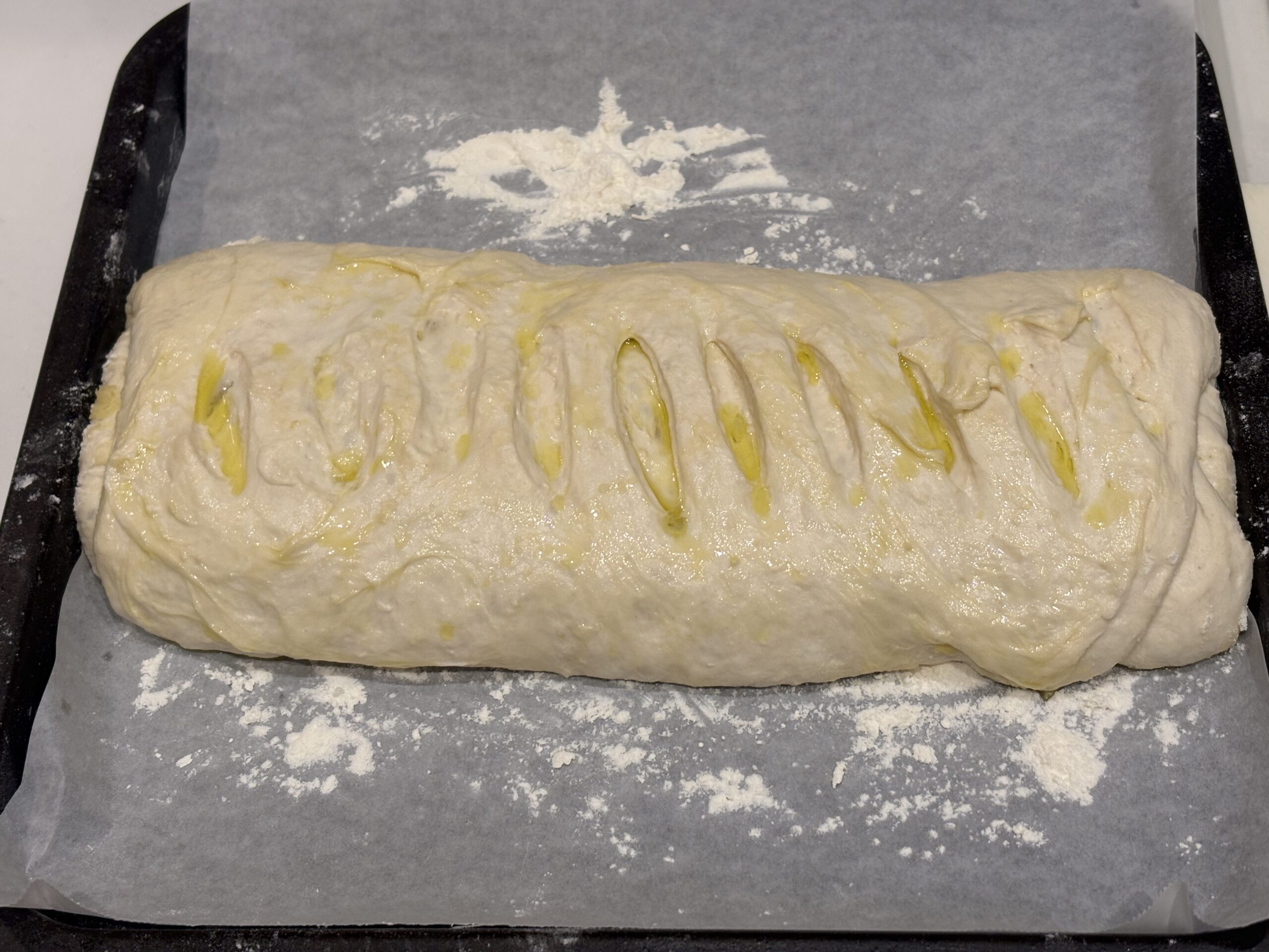 オーブンシートを敷いた鉄板に