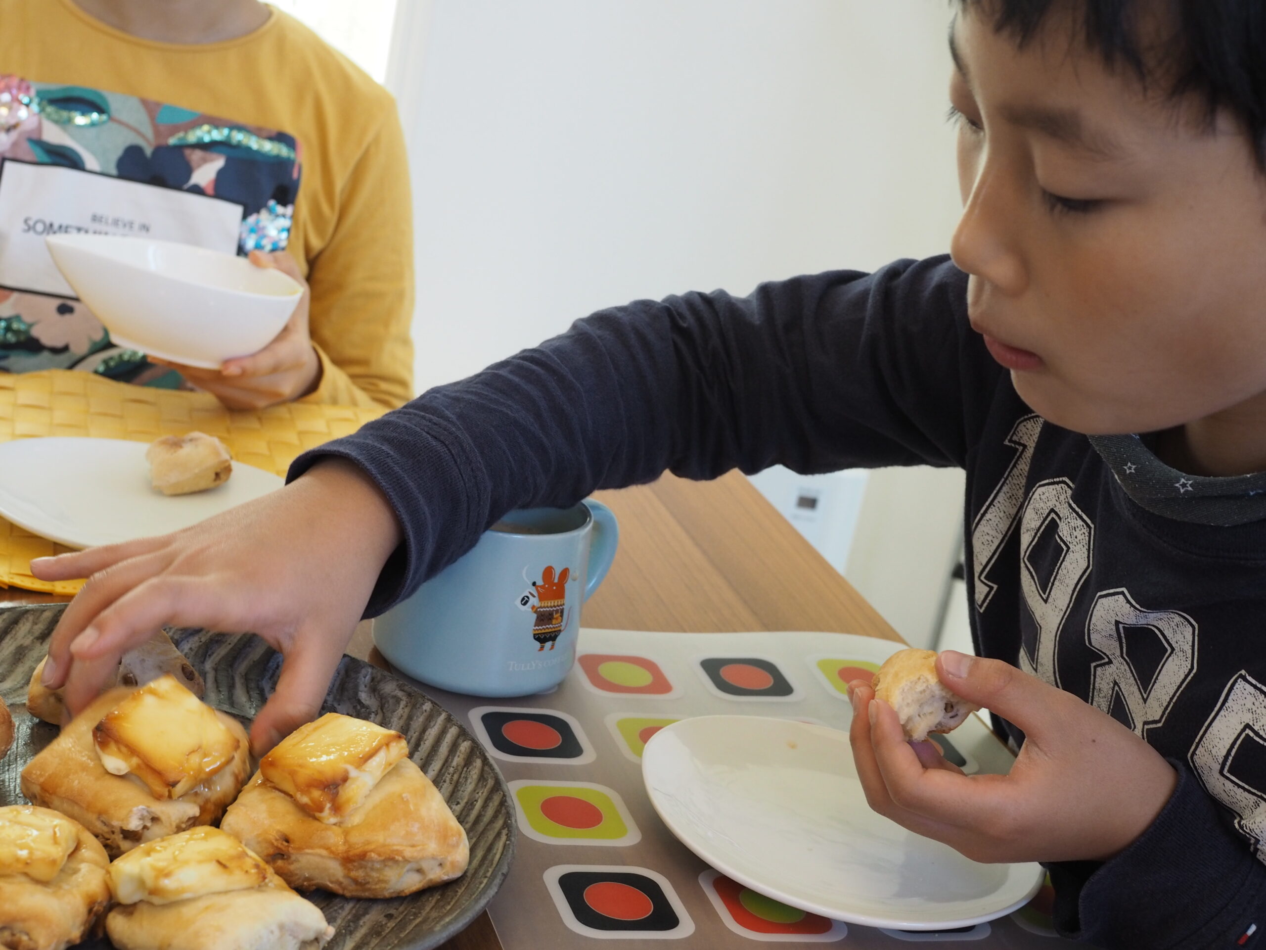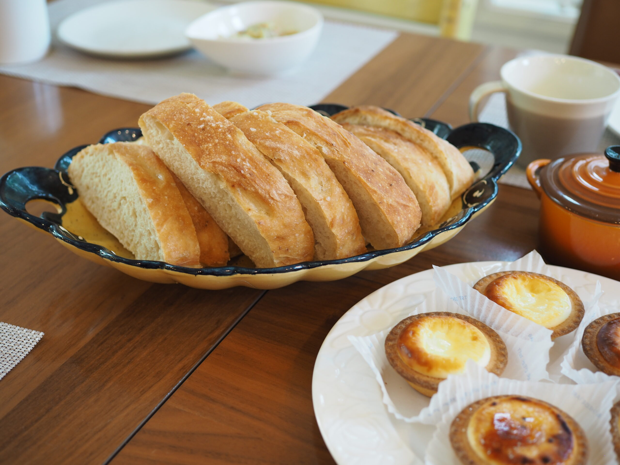 今日は、焼きたてパンの朝ごはん。